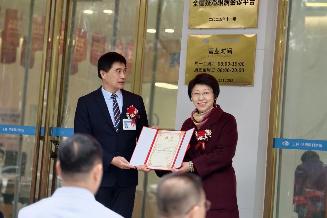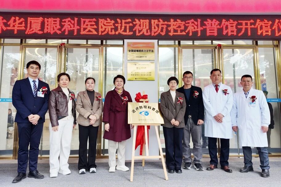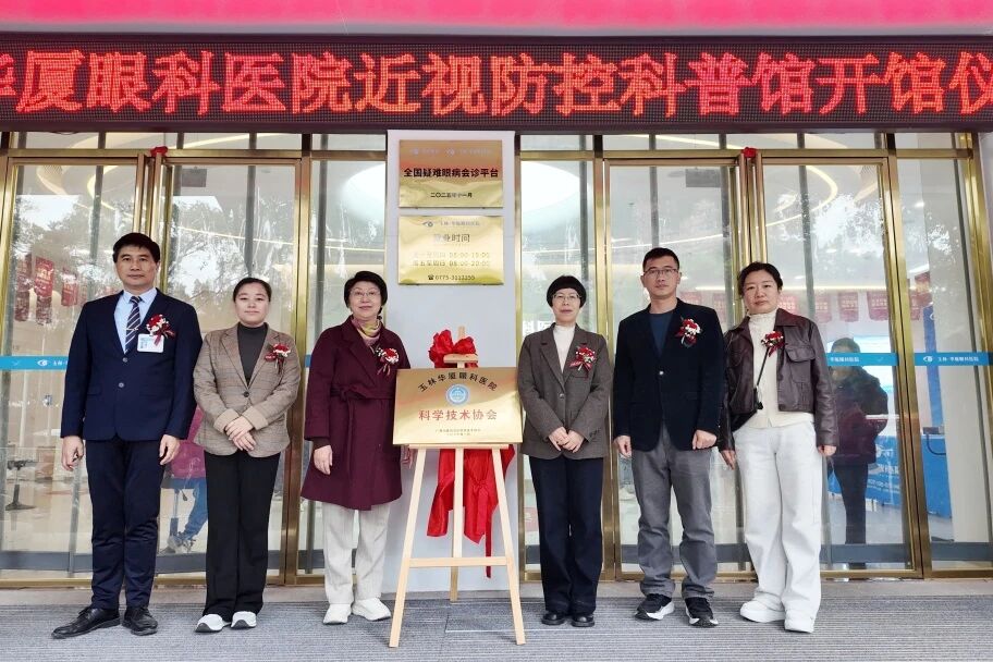 玉林市科学技术协会党组成员、副主席辛华,玉林市科学技术协会秘书科科长潘荣,玉城街道党工委宣传委员朱宝红,华厦眼科广西省区总院长吴西西,玉林华厦眼科医院院长韦志伟,玉林华厦眼科医院副院长李平,以及玉林华厦眼科医院总经理李远、南宁华厦视光眼科医院总经理周慧共同见证这一推动科技与健康融合发展的重要时刻。