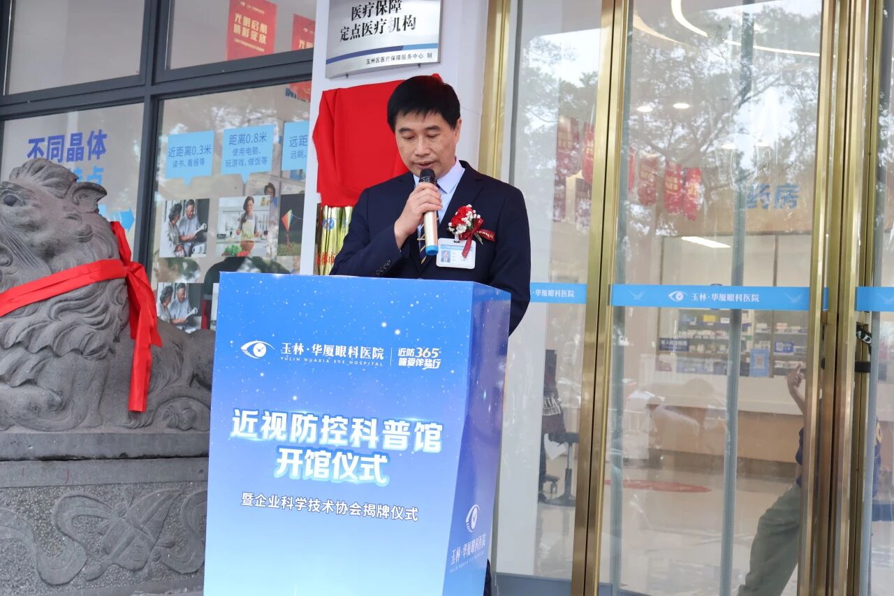 在庄严隆重的氛围中,与会领导共同为“玉林华厦眼科医院科学技术协会”和“近视防控科普馆”揭牌。