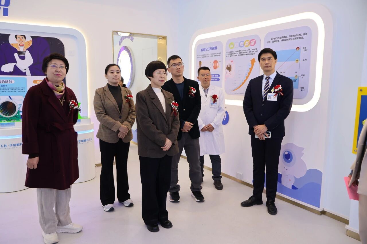 随后,举行近视防控科普馆开馆仪式。在全体嘉宾的共同见证下,红绸落下,象征着这座集科技性、互动性、教育性于一体的现代化科普馆正式向公众开放。